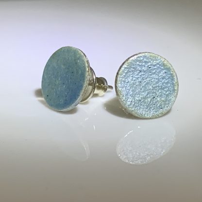 Enamelled studs made from reticulated sterling silver. Light blue. Approx 9mm diameter.